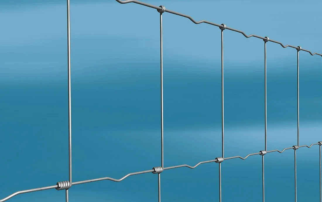 Knotted fencing with differentiated mesh. The vertical (cross) and horizontal (line) wires of the mesh are made in zinc coated steel obtained through the exclusive Galvafort Process created by Cavatorta. For use in agricultural and zoological sectors.
