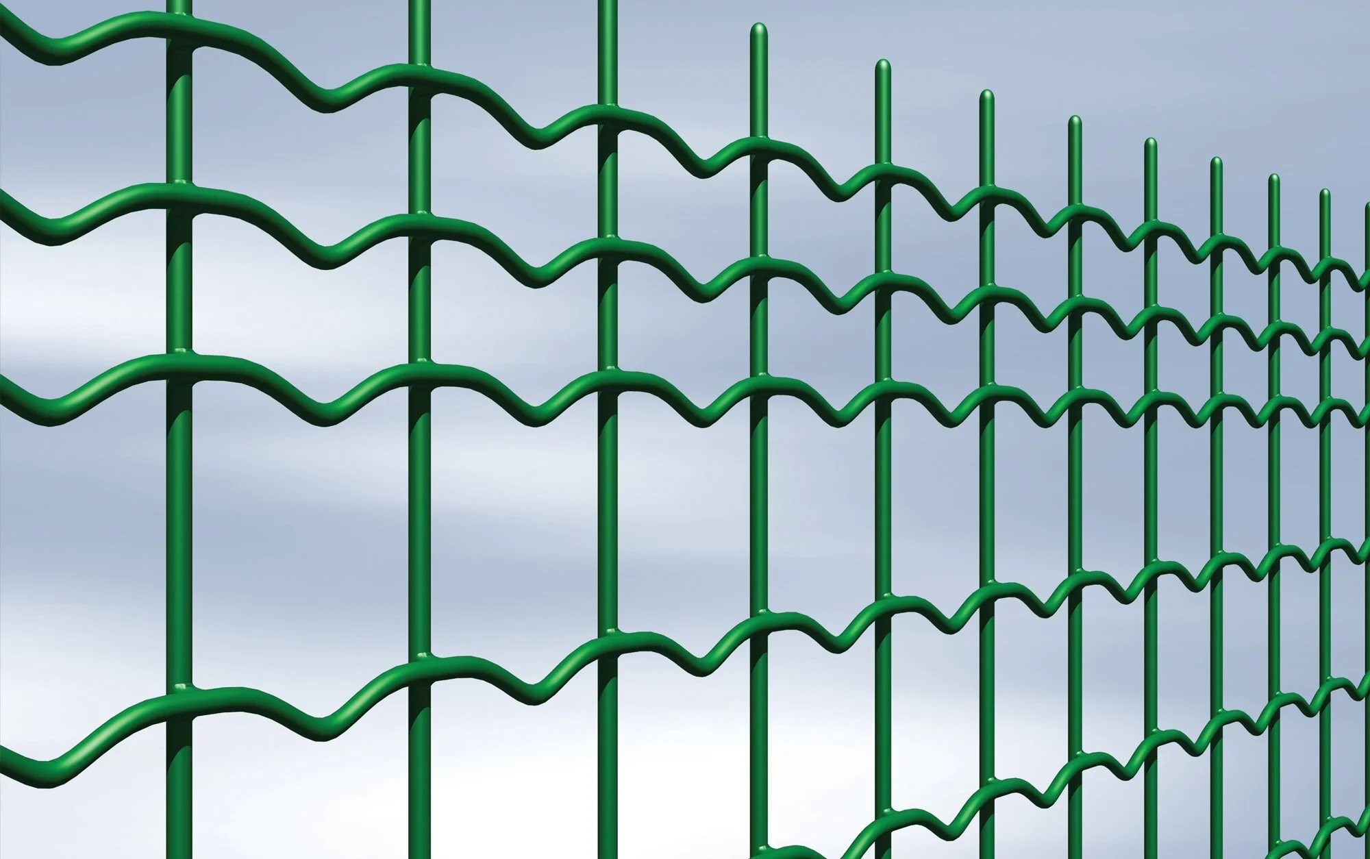 Electro-welded zinc and plastic coated wire with triple selvedge around the edges and pointed tips on the upper border. The vertical (cross) and horizontal (line) wires of the electro-welded mesh are made in zinc coated steel. Plastic coating is obtained through the exclusive sintering process Galvaplax Process created by Cavatorta.
